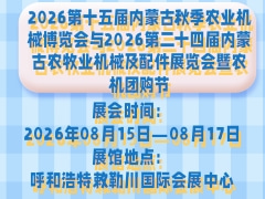 為深入貫徹《“十四五”全國農(nóng)業(yè)機(jī)械化發(fā)展規(guī)劃》《內(nèi)蒙古自治區(qū)“十四五”推進(jìn)農(nóng)牧業(yè)農(nóng)村牧區(qū)現(xiàn)代化發(fā)展規(guī)劃》及2025年中央一號文件關(guān)于"農(nóng)業(yè)新質(zhì)生產(chǎn)力”的戰(zhàn)略部署,全面落實(shí)《國務(wù)院關(guān)于推動大規(guī)模設(shè)備更新和消費(fèi)品以舊換新行動方案》,緊扣“全程全面、高質(zhì)高效”發(fā)展目標(biāo),推動農(nóng)牧業(yè)機(jī)械化與智能化、綠色化深度融合,助力農(nóng)畜產(chǎn)品生產(chǎn)基地優(yōu)質(zhì)高效轉(zhuǎn)型。由內(nèi)蒙古農(nóng)牧業(yè)機(jī)械工業(yè)協(xié)會主辦的“2026第十五屆內(nèi)蒙古秋季農(nóng)業(yè)機(jī)械博覽會”與內(nèi)蒙古合作社聯(lián)盟主辦的“2026第二十四屆內(nèi)蒙古農(nóng)牧業(yè)機(jī)械及配件展覽會暨農(nóng)機(jī)團(tuán)購節(jié)"于2026 年8月 15—17 日在呼和浩特敕勒川國際會展中心盛大舉辦。本屆展會以“智聯(lián)草原 械動未來”為主題,聚焦“新技術(shù)、新場景、新生態(tài)”,打造集裝備展示、技術(shù)交流、商貿(mào)合作、政策解讀于一體的全產(chǎn)業(yè)鏈平臺,誠邀行業(yè)同仁共赴盛會,誠邀各盟市農(nóng)機(jī)推廣部門科技人員、農(nóng)業(yè)/農(nóng)機(jī)/養(yǎng)殖專業(yè)合作社、種養(yǎng)殖大戶、牧場、家庭農(nóng)場等經(jīng)營主體觀摩指導(dǎo)。有關(guān)事項(xiàng)通知如下: