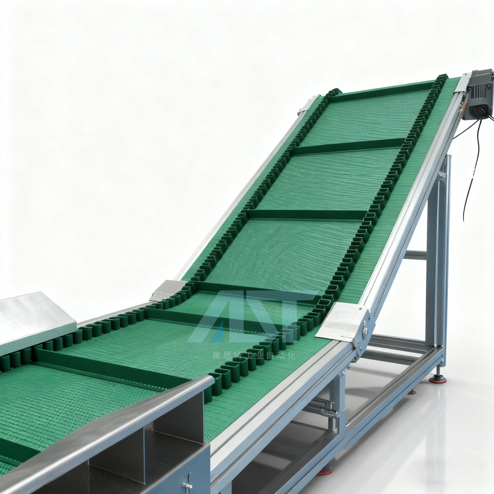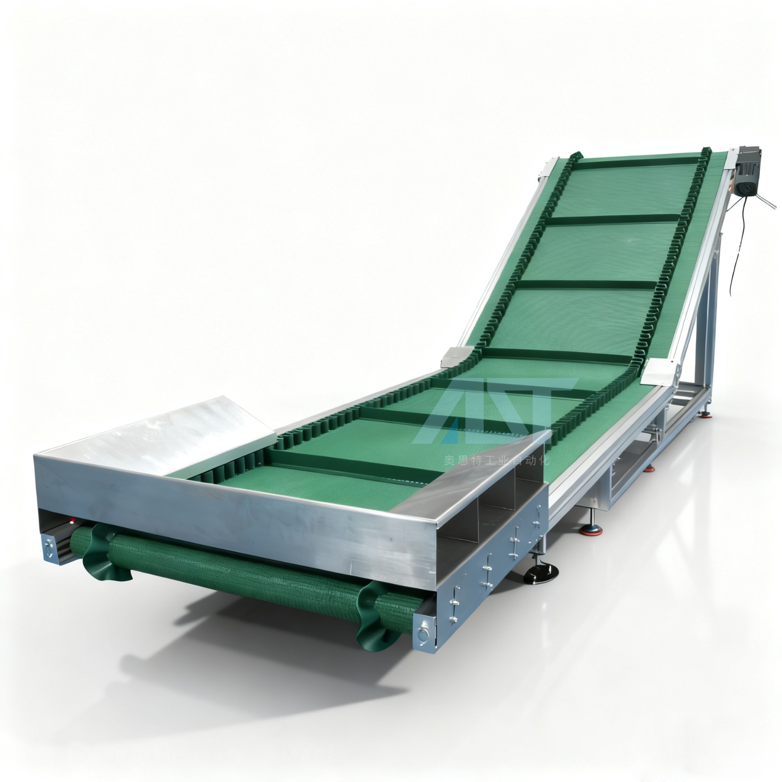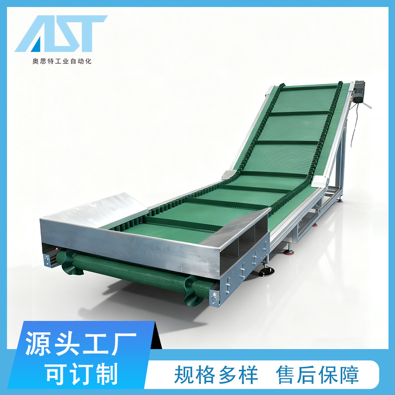 爬坡輸送機不銹鋼帶隔板防滑耐磨草紋皮帶線流水線提升機自動上料 1臺
