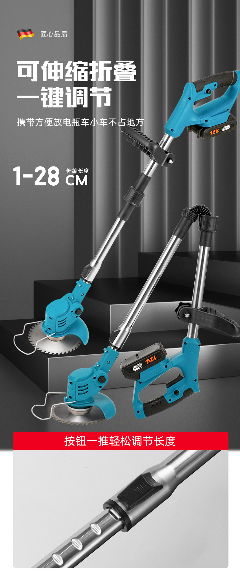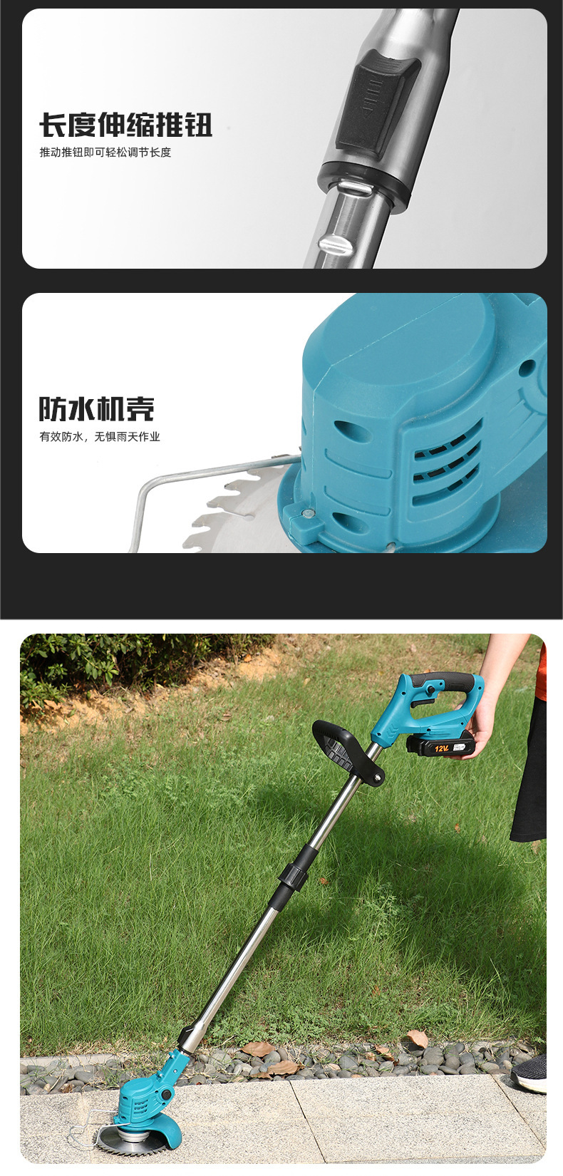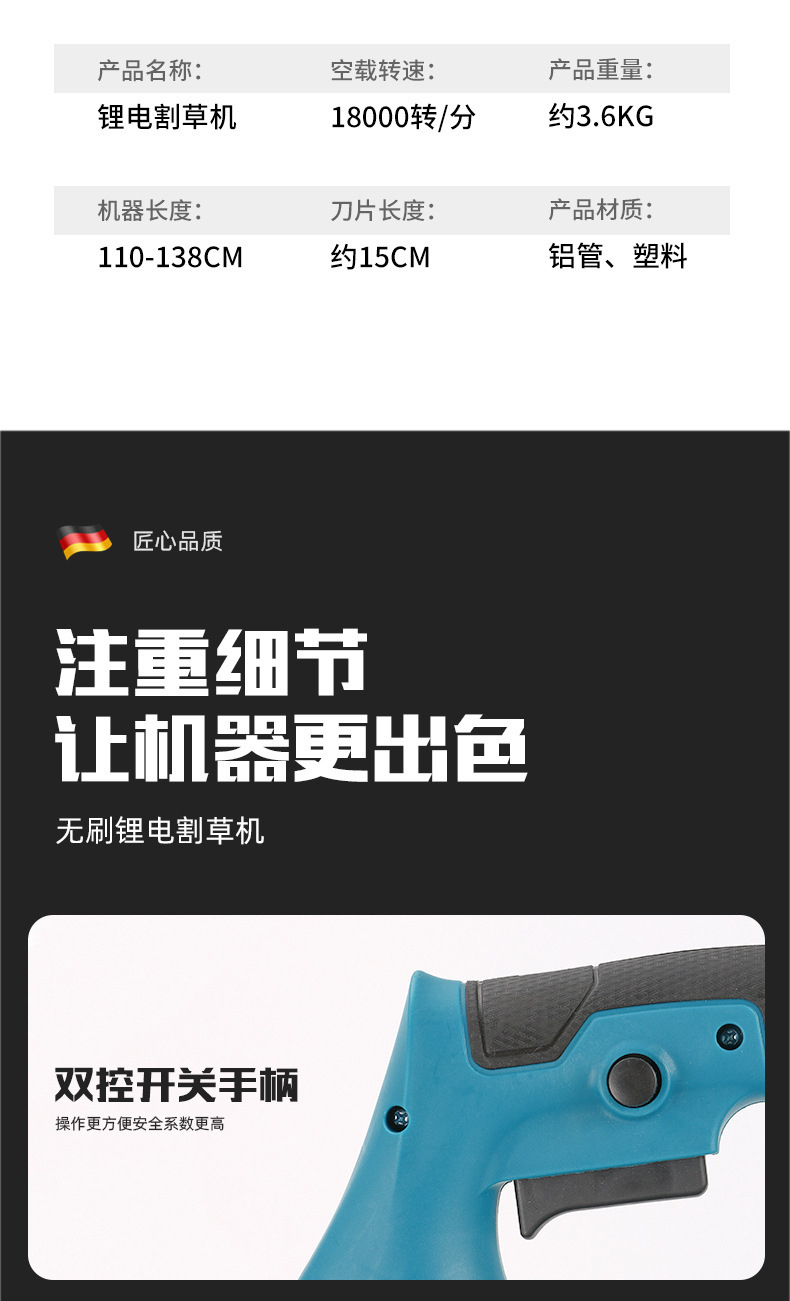 跨境專供可折疊鋰電割草機多功能除草修枝電動除草機充電式打草機