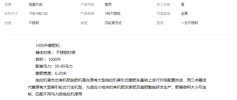 1000升撒肥機(jī)化肥顆粒肥撒肥機(jī)