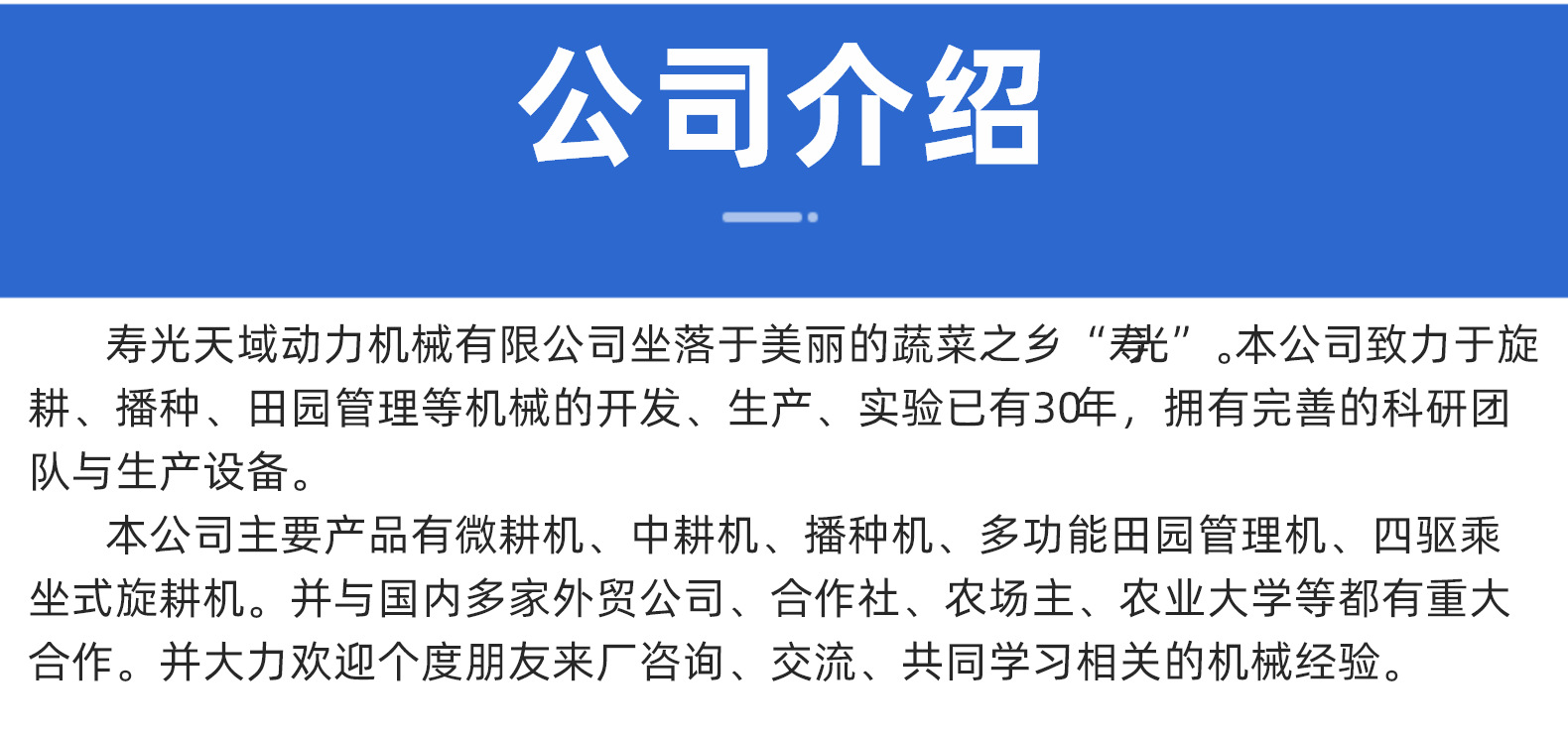主營: 土壤耕整機械 種植機械 柴油發電機組