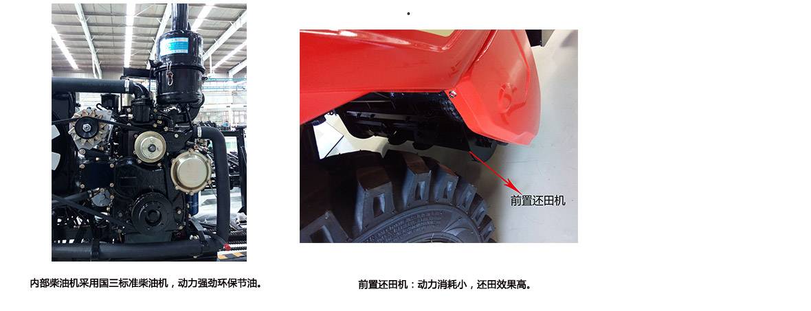 2.四輪驅(qū)動(dòng),液壓轉(zhuǎn)向。糧倉(cāng)后置容量大,且在