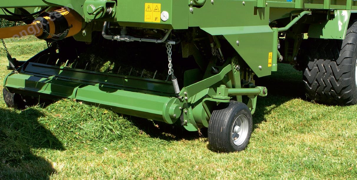 | AM機械新型的切碎,輸送總成擁有切碎效果好,物料通過量高和動力需求小等特點。帶有耐磨鍍層的螺旋星形攪龍連續(xù)的將物料輸送至平行排列的刀片處的同時以為物料加壓的方式讓其在有限空間內通過刀片,從而在輸送的同時對物料產生切割的效果。攪龍的螺旋形設計意在產生滑切或剪切效果-提高切碎質量,減少動力損耗。 | 無凸輪控制的撿拾裝置相對凸輪軌道撿拾器擁有構造簡單有效,運動部件少,工作噪音低,減少維修保養(yǎng)成本等幾大顯著優(yōu)勢。EasyFlow 由于構造上的優(yōu)勢可比凸輪撿拾器增加30%的作業(yè)轉數(shù),高轉數(shù)不僅能夠提高作業(yè)效率,而且可以帶來更大的離心力輔助后續(xù)功能單元對物料的輸送。 |