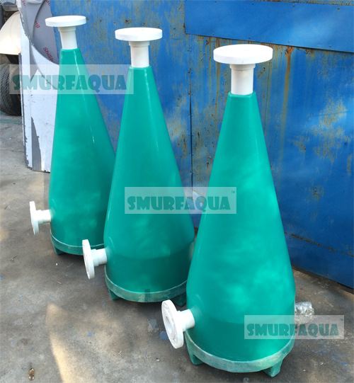 氧氣錐采用玻璃鋼(高強(qiáng)度玻璃纖維復(fù)合樹脂)噴熔纏繞而成。整體呈現(xiàn)上小下大的錐體結(jié)構(gòu)。進(jìn)出水采用PVC法蘭連接。底部有排污口及觀察窗。