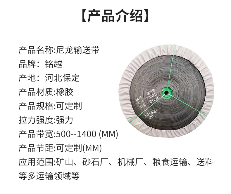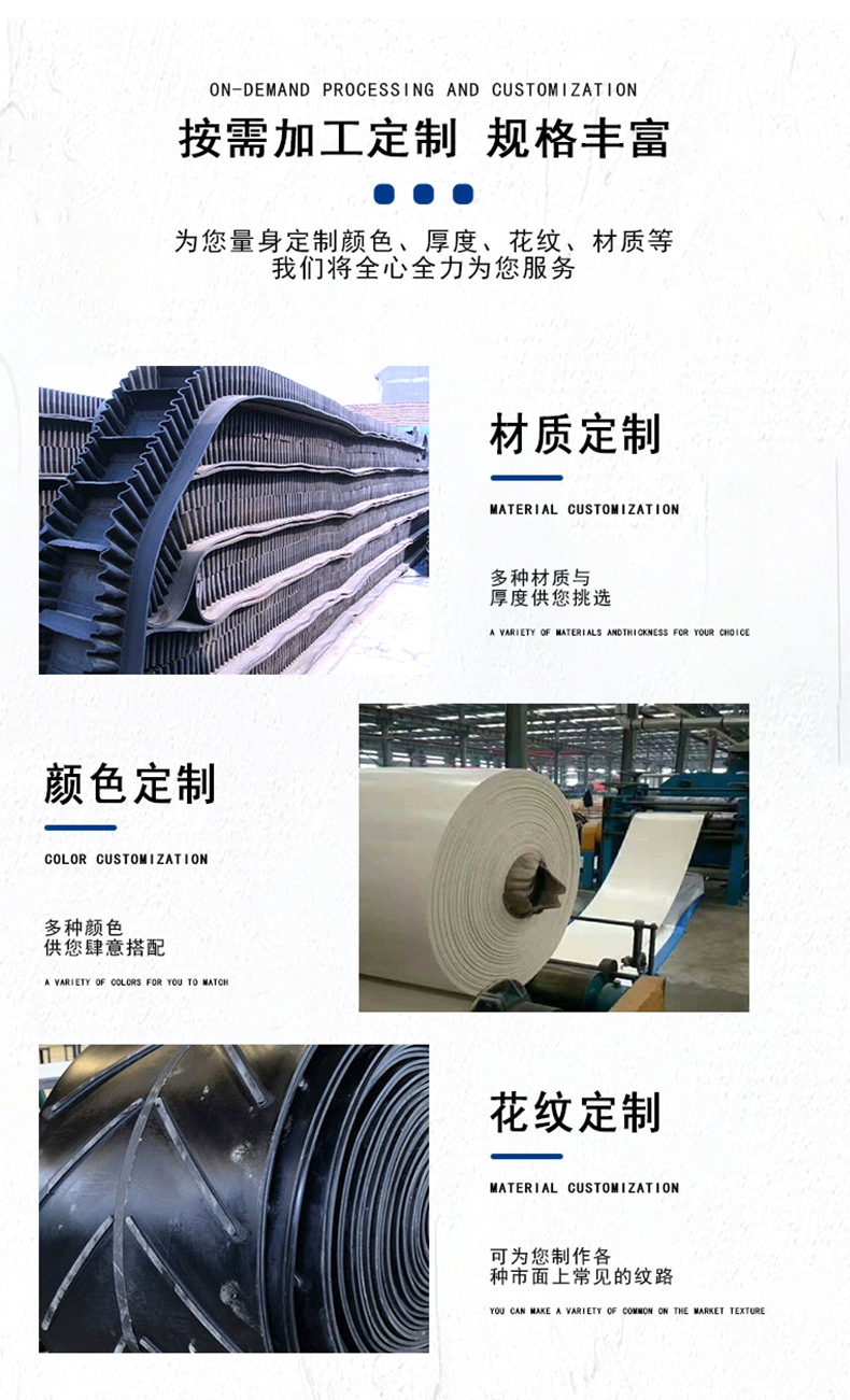 尼龍橡膠輸送帶加厚耐磨機械傳送帶防滑阻燃環形工業運輸皮帶擋邊