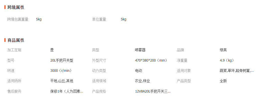 充電器:1只(12V);噴頭:3只;背帶:1付;膠管:1根;說明書:1份:伸縮桿1根:過濾網(wǎng),皮墊。保修范圍: