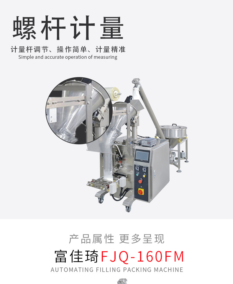詳細信息 加工定制是 貨號FJQ-160FM 功能包裝容器成型,打碼、噴碼,灌裝,封口,充填,殺菌、干燥,打包,清洗,計量 品牌富佳琦 型號FJQ-160FM 電壓220(V) 功率2.2(Kw) 包裝膜寬320(mm) 制成袋尺寸(L)30~200*(w)50~150(mm) 包裝速度30~70(袋/分鐘) 重量350(kg) 外形尺寸(L)1100*(W)823*(H)1650(mm) 包裝材料復合材料 包裝類型袋 自動化程度全自動