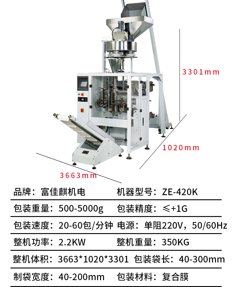 詳細信息 加工定制是 功能包裝容器成型,打碼、噴碼,灌裝,封口,充填,殺菌、干燥,打包,清洗,計量 品牌富佳麒 型號FJQ-LB420 電壓220(V) 功率2.2(Kw) 包裝膜寬420(mm) 制成袋尺寸(L)80~300*(w)60~220(mm) 包裝速度5~60(袋/分鐘) 重量650(kg) 外形尺寸(L)1217*(W)1015*(H)1343(mm) 包裝材料復合材料 包裝類型袋 自動化程度全自動 適用對象小型顆粒