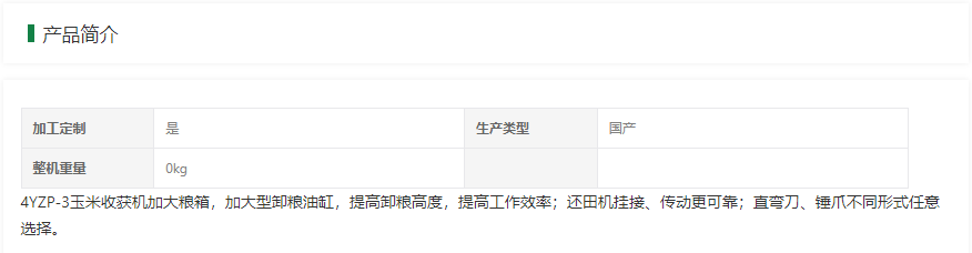 4YZP-3玉米收獲機(jī)技術(shù)參數(shù)
