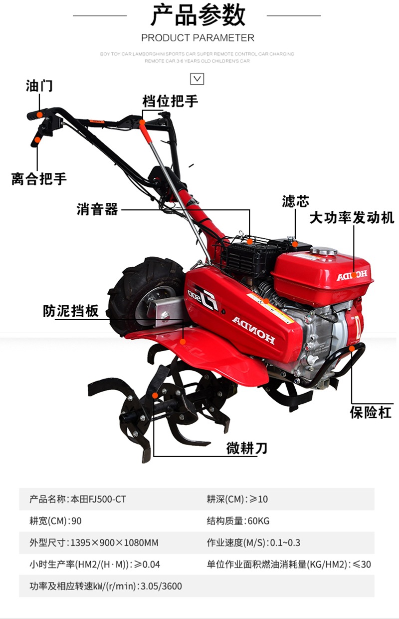 原裝FJ500微耕機四沖程汽油機旋耕機翻土松土除草開溝耕作機