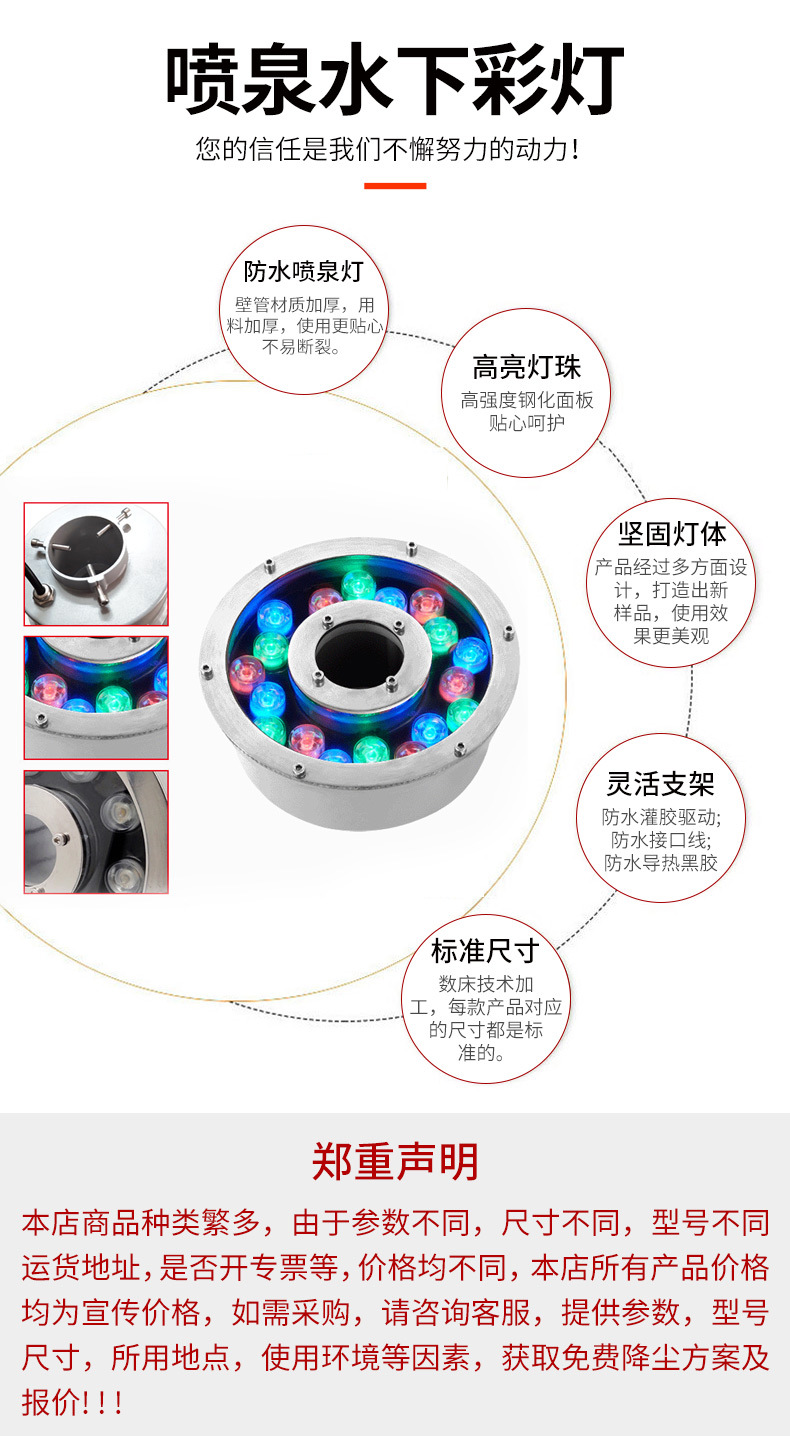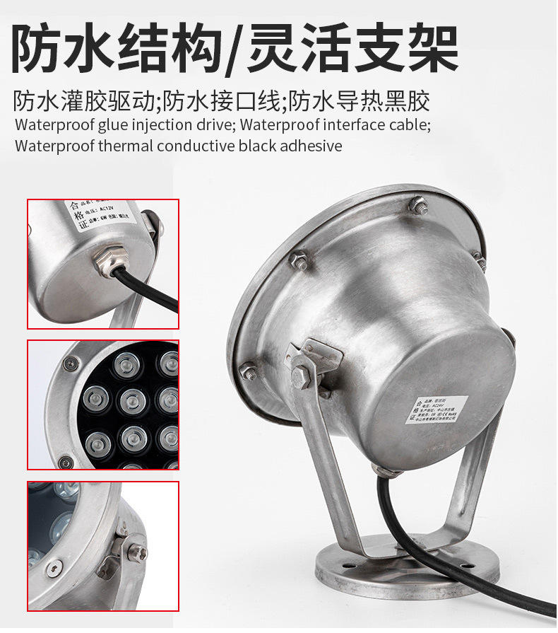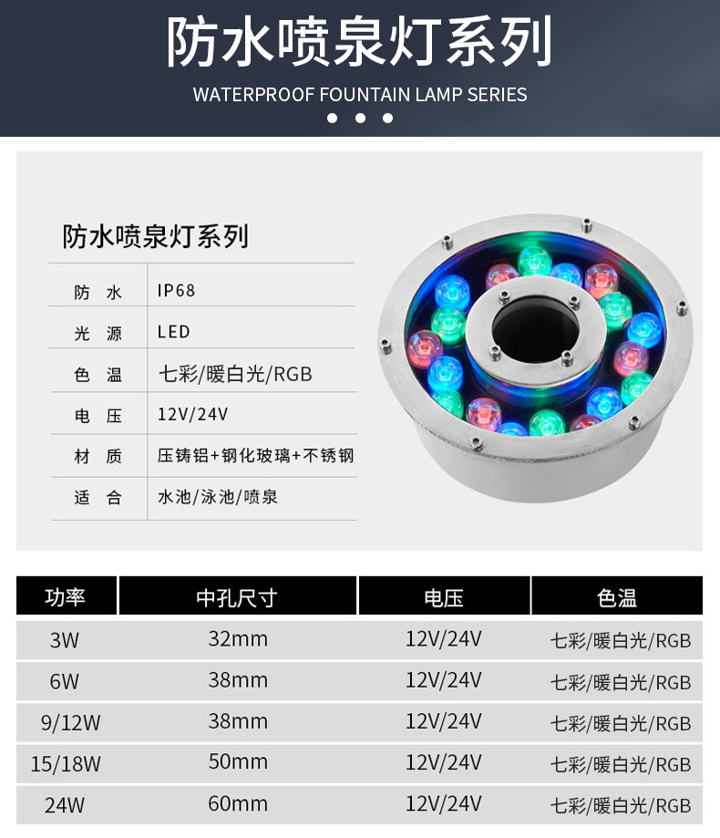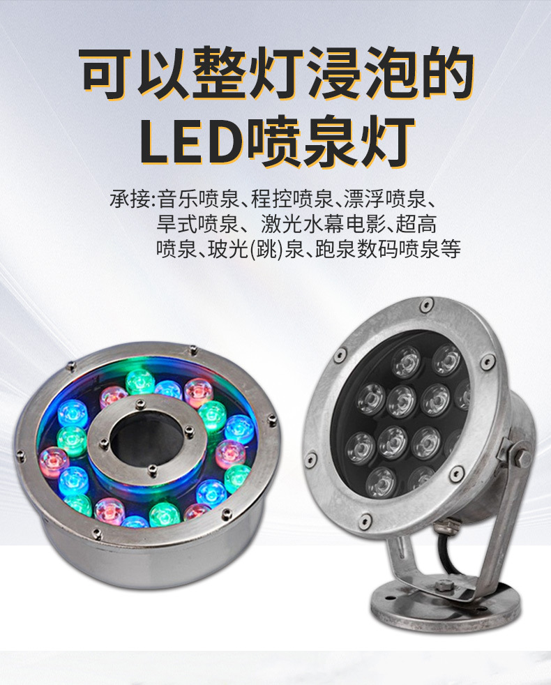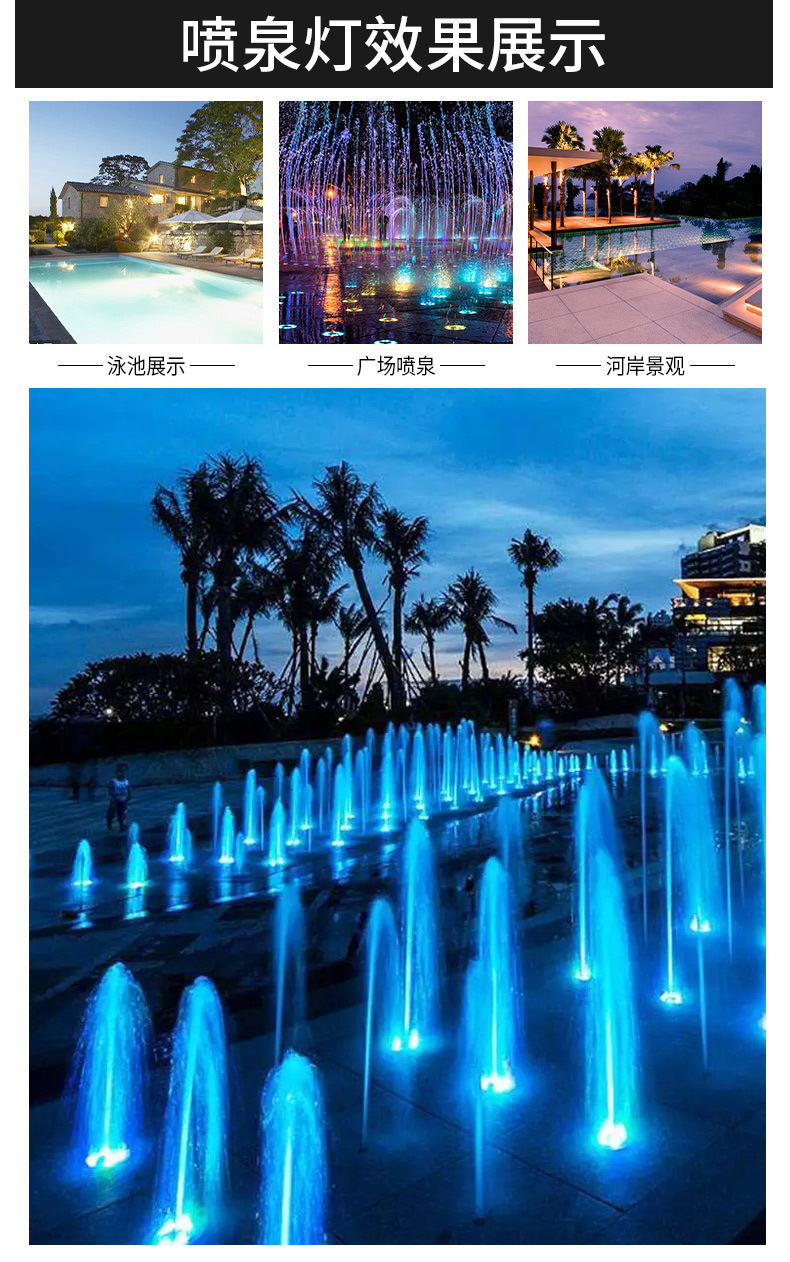 led水底燈射燈戶外防水七彩噴泉燈魚池燈景觀燈遙控低壓24v水下燈