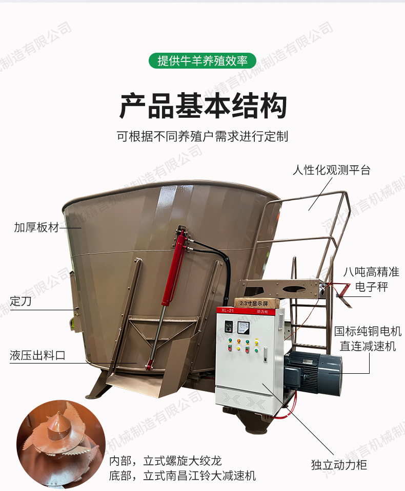 tmr立式大功率全混合日糧制備機(jī)牛羊飼料草料切割柔絲攪拌一體機(jī)