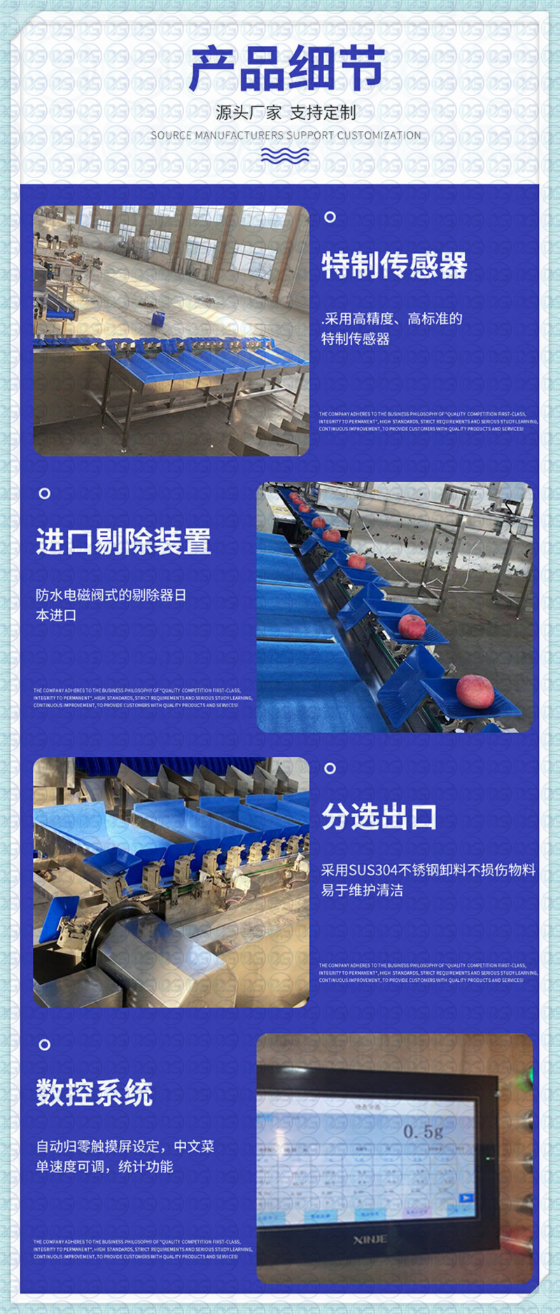 產(chǎn)品用途將各種水果按重量分選多個(gè)等級(jí)