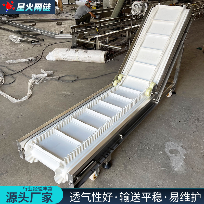 爬坡皮帶輸送機(jī)食品級流水線裙邊擋板PU皮帶提升機(jī)顆粒上料傳送機(jī)