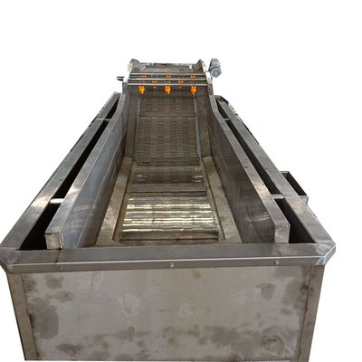 2.設備輸送帶電機可實現調節變速功能,被清洗的蔬菜經過網鏈輸送,自動送料,自動出料,根據生產需要調節輸送帶輸送速度;