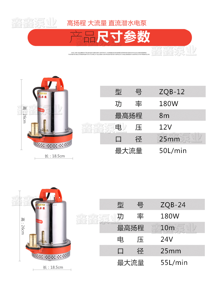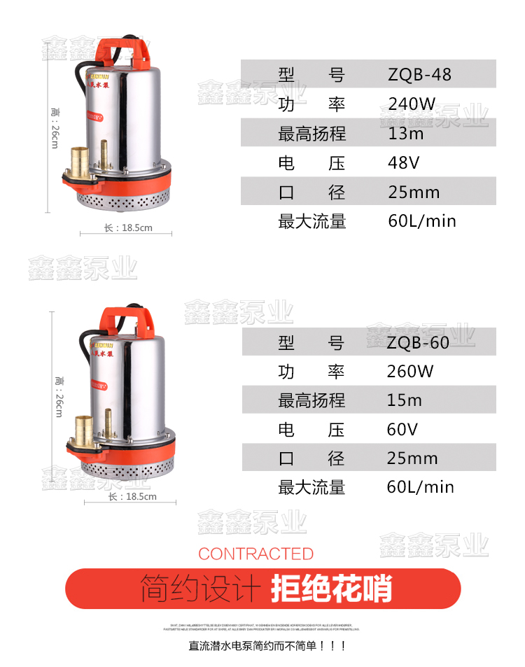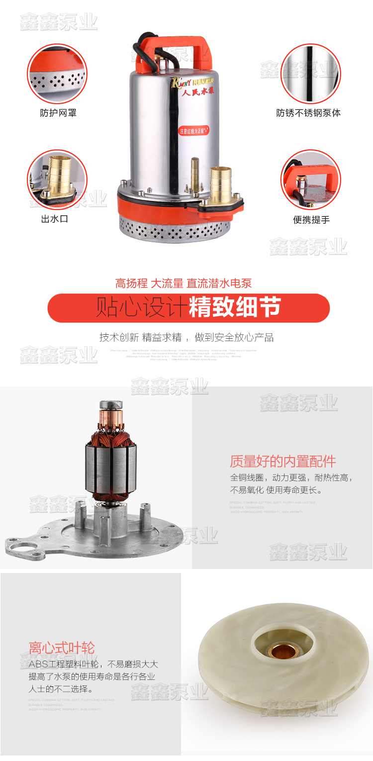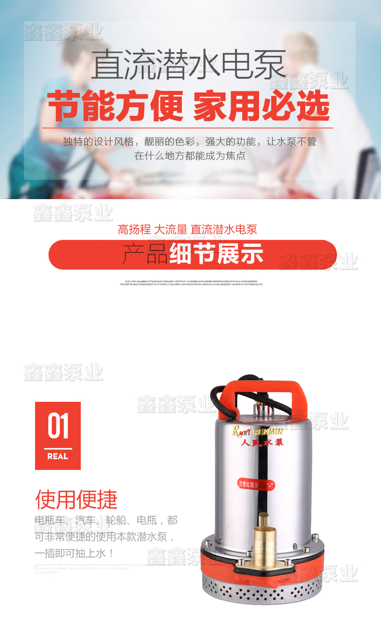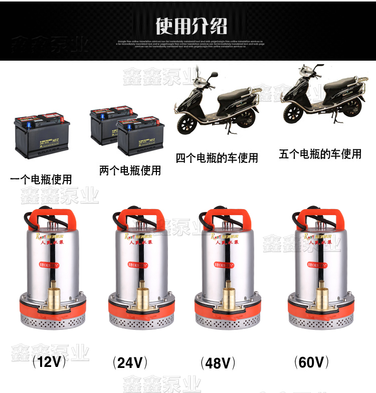 家用12V24V48V60V72伏直流潛水泵農用電瓶抽水機高揚程電動車水泵