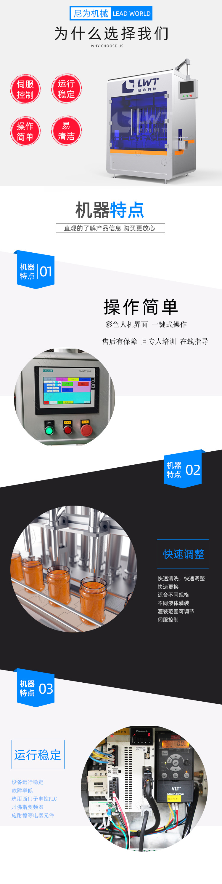 詳細(xì)信息 訂貨號566990000333 加工定制是 貨號566990000333 品牌LeadWorld/尼為 型號LW-YETGZ 功率1.6(kw) 外形尺寸定制*1020*2250mm 灌裝頭數(shù)2~12 灌裝精度±0.5~1(%) 包裝類型罐 工作原理常壓 適用對象化妝品類,護(hù)發(fā)用品,醬類,果汁飲料,清潔、洗滌用品 適用行業(yè)食品,日化 物料類型液體 自動化程度自動