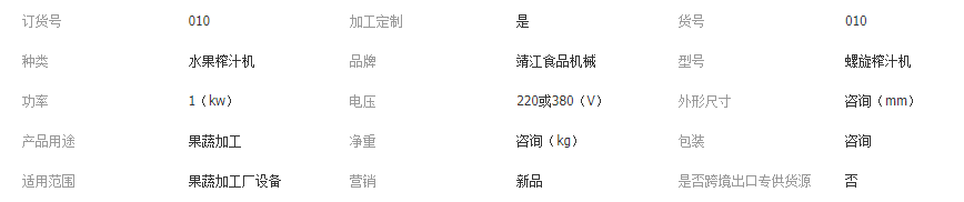 該機(jī)主要用于壓榨果蔬汁液。