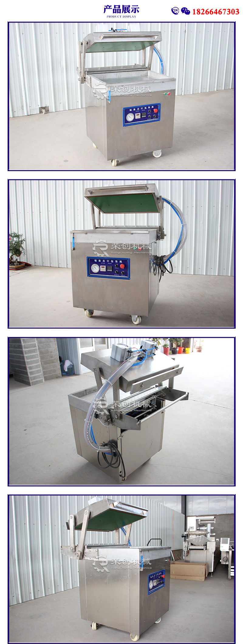 榮創(chuàng)貼體真空包裝機(jī)是在真空狀態(tài)下,利用真空貼體膜將產(chǎn)品真空密封在透明真空膜和底盤之間。可保持食品、海鮮、肉類等的色澤、香味、鮮嫩度,真空貼體包裝機(jī)特具貼身包裝立體展示和真空保鮮保護(hù)之雙重功效。真空全密封式包裝,可以保持產(chǎn)品自然的鮮嫩、芳香、色澤和汁味。用高阻隔真空包裝膜,可阻隔氧氣,在低溫環(huán)境下抑·制好氧菌的繁殖,更長時(shí)間保鮮及保護(hù)產(chǎn)品的自然色澤。