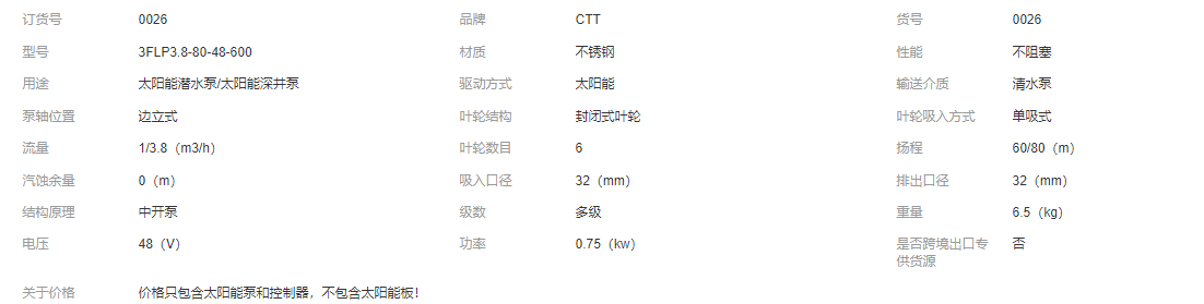 太陽能光伏水泵 24V48V高揚程太陽能深井泵無刷直流太陽能潛水泵