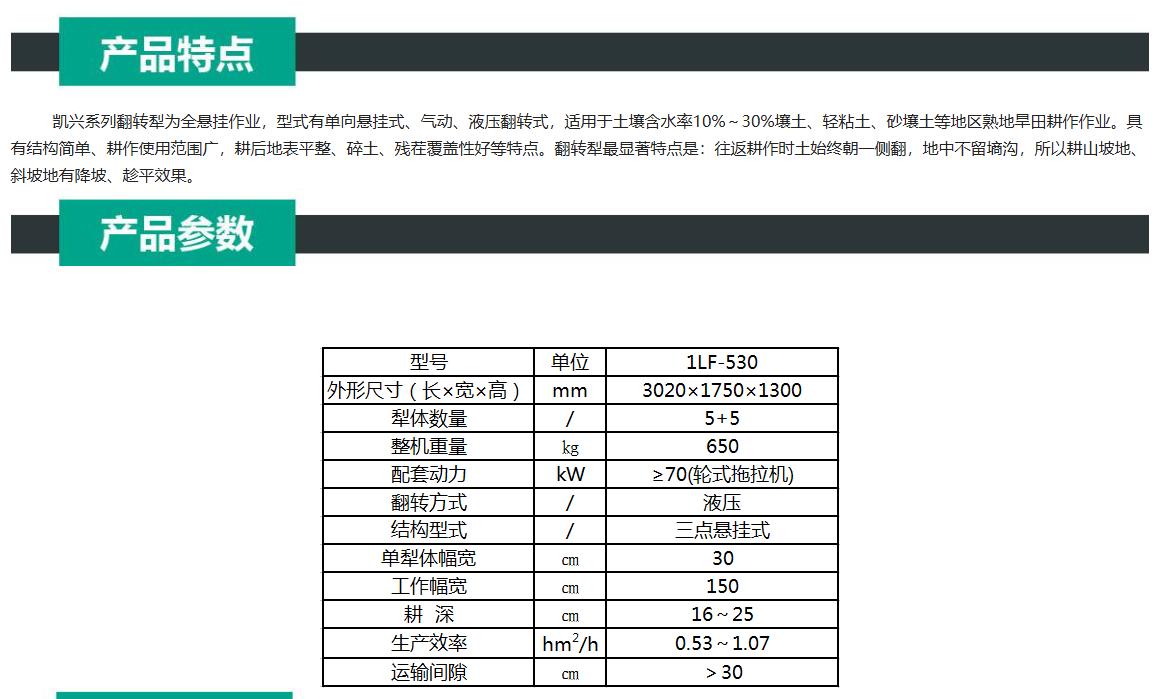 凱興1LF-530深耕鏵式翻轉(zhuǎn)犁