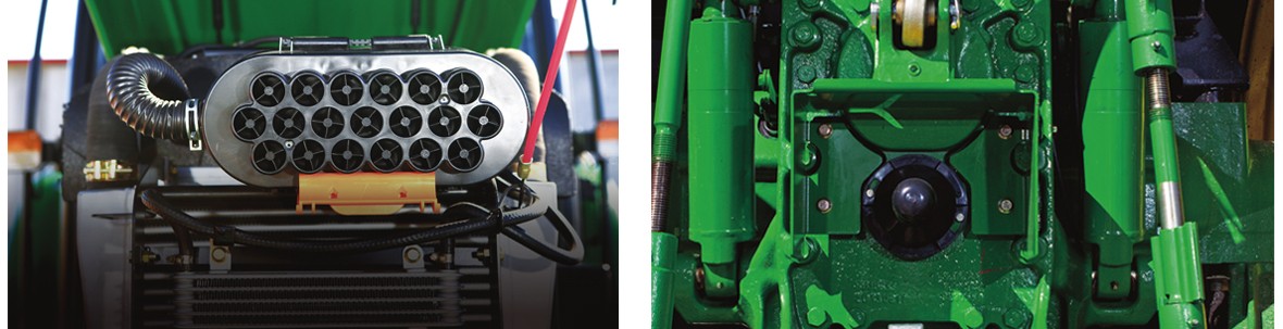 ● 約翰迪爾6B系列拖拉機包含馬力段95-140馬力,配備業(yè)界領(lǐng)先的約翰迪爾PowerTech發(fā)動機,1404 6缸機扭矩儲備高達35%。性能卓著的約翰迪爾變速箱,獲得了近乎完美的表現(xiàn)。標(biāo)配12個前進擋4個倒退擋,120馬力以上機型可選裝24x8高低速動力換擋變速箱。1204,1404機型豪華版機型配有24個前進擋12個倒退擋,還標(biāo)配動力前后換擋機構(gòu),無需踩離合,只需手柄即可切換行駛方向,流暢省時。該系列拖拉機采用了全新整體式引擎罩;整體式大面積進氣格柵,保證了便利的維護。全新設(shè)計的后懸掛包括雙外置提升油缸,可在提高提升能力的同時降低維護時間和成本。寬敞舒適的駕駛室視野極佳,密封性能好,噪音低。高擋坐椅,可方便進行水平及舒適度調(diào)節(jié)。1204,1404豪華機型更有可調(diào)角度、長度方向盤,舒適性更進一步。豪華、高配和舒適機型配有空調(diào)暖風(fēng)。豪華、高配和舒適機型在17年均增加兩組前工作燈,保障了駕駛員夜間工作的安全性和作業(yè)效率。6B系列拖拉機采用了PowerCore空濾系統(tǒng),過濾效果更好,更高效提升20%空氣流通容量,且無需工具即可方便的維護。1404六缸機型將油箱容積提高到255升,效率的飛躍,顯而易見。1404六缸機標(biāo)配濕式離合,壽命長達1萬小時。