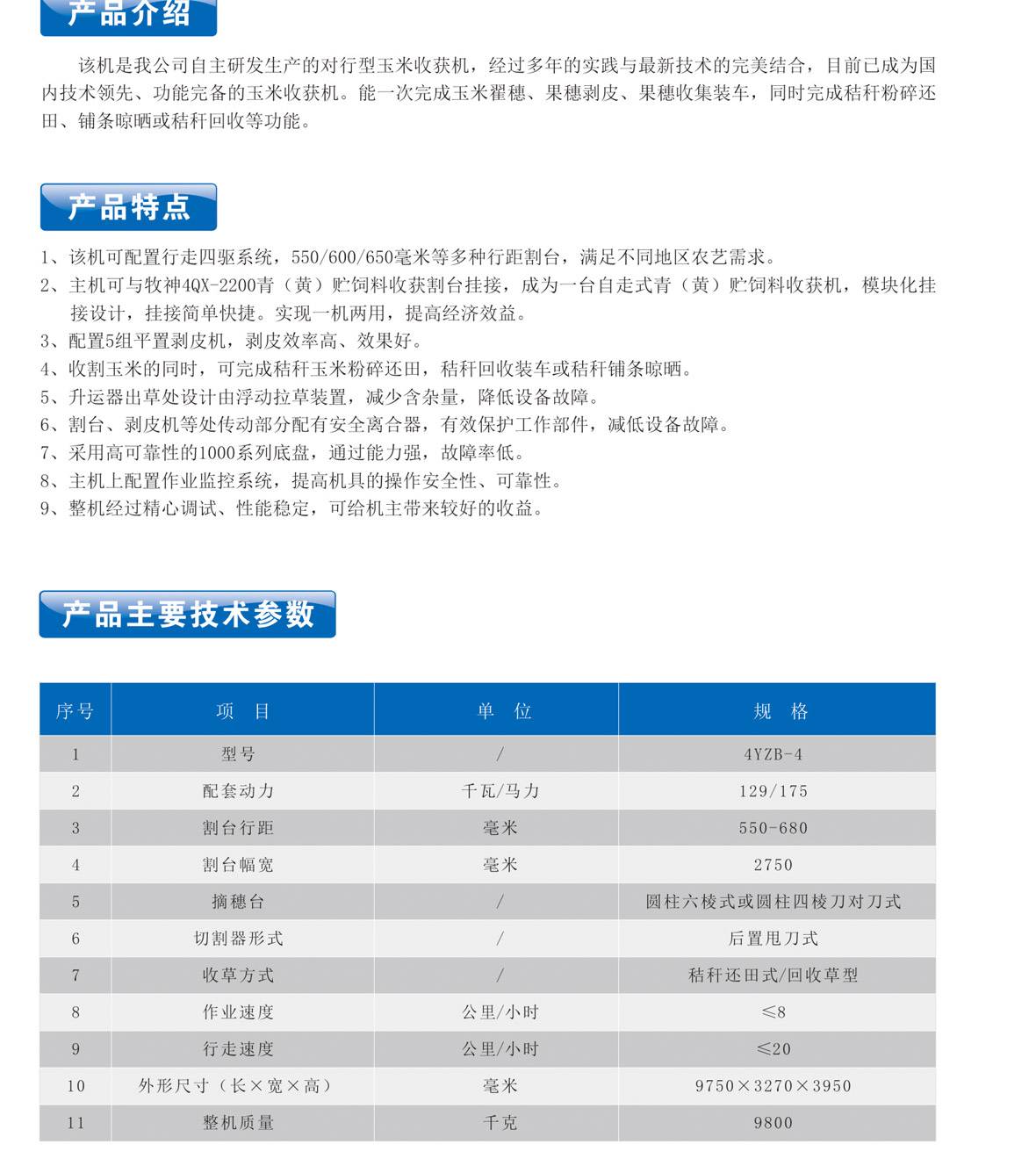 牧神4YZB-4自走式收玉米聯合收獲機