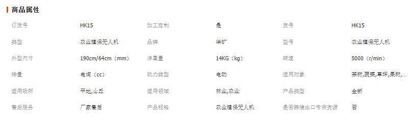 植保無人機產品參數: