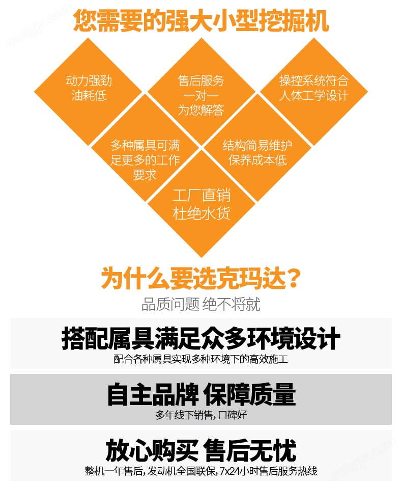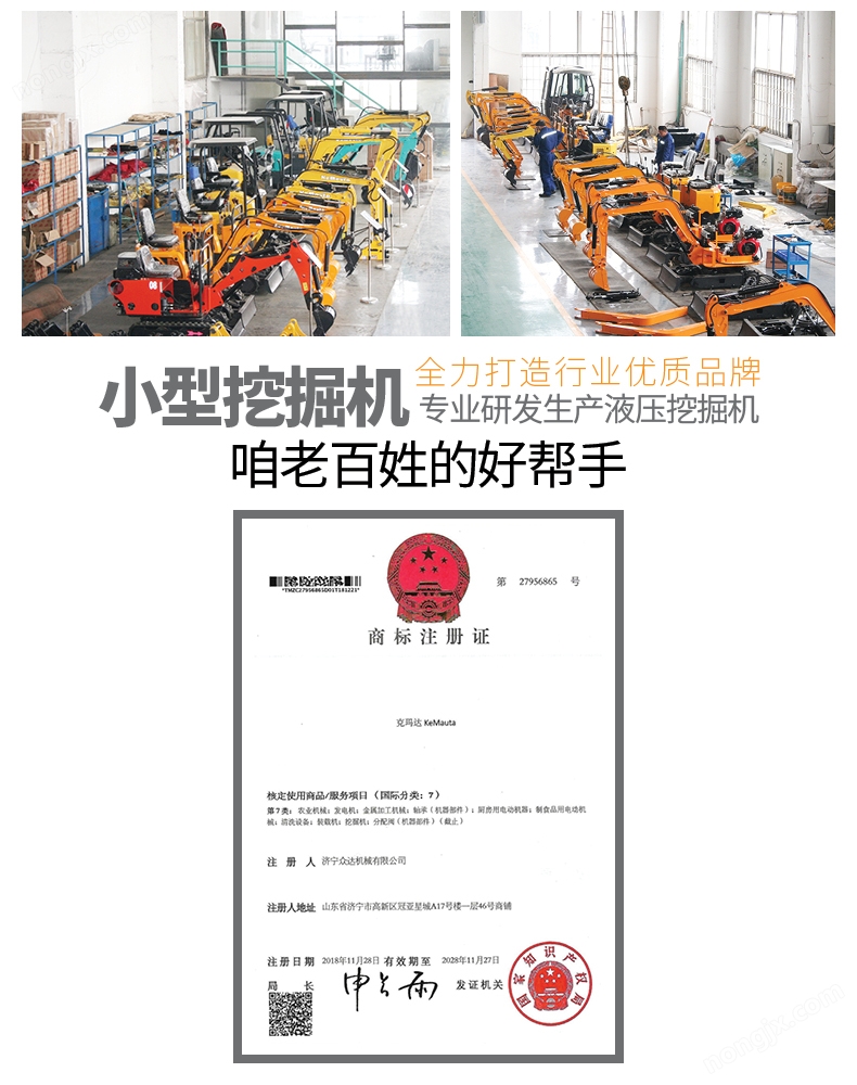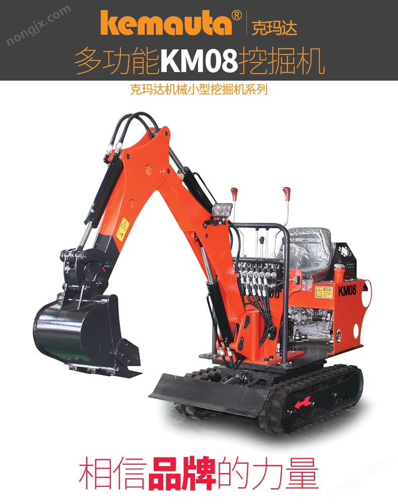 微型履帶式挖掘機KM08是濟寧眾達機械有限公司生產的小型挖掘機。濟寧眾達機械有限公司座落在中國儒家文化發祥地、京杭運河之都、中國工程機械制造基地之一、中國工程機械配套件大制造集散基地—山東省濟寧市,成長于濟寧*產業開發區。公司集產品研發、產品試驗、售后服務、技術咨詢、技術維修、配件供應為一體,優化整合20多年工程機械專業技術資源優勢,致力服務于小型挖掘機設備市場,為客戶提供優質的產品。公司現主營產品KM10、KM11、KM13、KM15、KM16、KM17、KM18、KM20、KM22、KM23等3.5噸級以下小型挖掘機設備。 我公司不僅僅致力于產品的研發生產銷售,更注重售后的服務、用戶的反饋。我公司現有售后人員30余人,從事機械維修15年以上有5人。通過用戶及售后人員的反饋,我公司不斷改進、完善產品,進一步為客戶提供更科學、更完善、更穩定、更節能、更人性化的產品設備。 克瑪達機械愿以優質產品服務于中國大眾為己任,為中國經濟發展盡微薄之力。克瑪達公司來源于眾服務于眾,修德煉達,以求達于事理,公司團隊將眾志成城,通達明德,務實創新,融達和諧,持續發展。