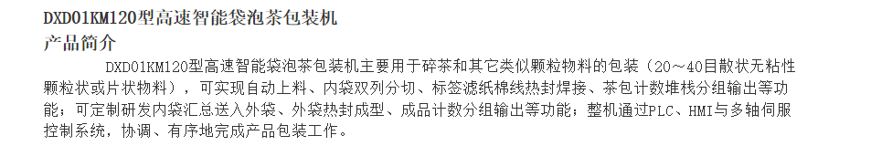 高速包裝機 DXD01KM120型高速智能袋泡茶包裝機