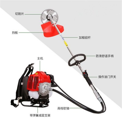 新品側掛背負式割草機 新款汽油割草機視頻效益較佳:由于割草機旋轉速度快,對果園雜草的切割效果好,特別對嫩度高的雜草的切割效果更佳。一般一年除草3次,基本能達到除草要求。魚草等各類雜草, 操作簡單,工作效率高,(主要是指背負式割草機)。