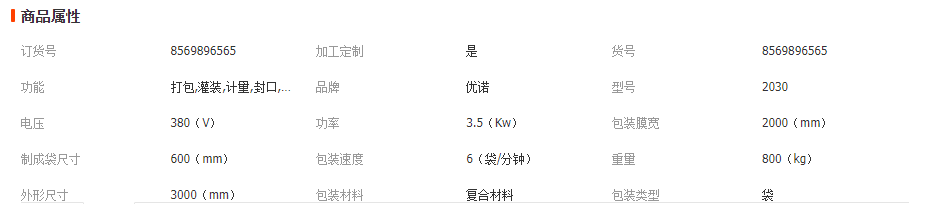 定量包裝機技術參數