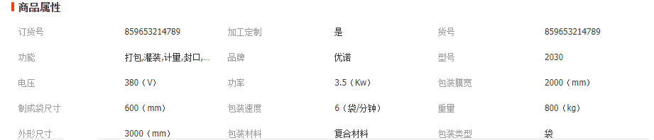 定量包裝機(jī)技術(shù)參數(shù)