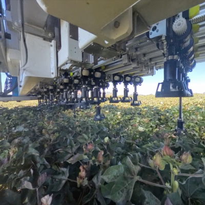 棉花智能打頂機器人VTM-09B專為棉花種植打頂場景下打造的農業機器人,配備傳感器和機器視覺 系統,能夠精準識別棉花頂芽,模仿人工打頂操作,實現高效、精準的作業。借助農藝大模型與實時環境 感知技術,動態調整打頂策略,即便在夜間也能持續作業,有效緩解了農忙期勞動力短缺的問題。