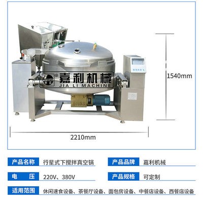 | 電壓 | 300(V) | 功率 | 4.75(kw) | 產品用途 | 用于餡料、果醬、糖果、果糕等食品的加工制作。可完成對食品的真空加溫 |