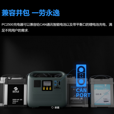 PC2500充電器可以兼容給CAN通訊智能電池以及帶平衡口的鋰電池充電,滿足不同用戶的需求.