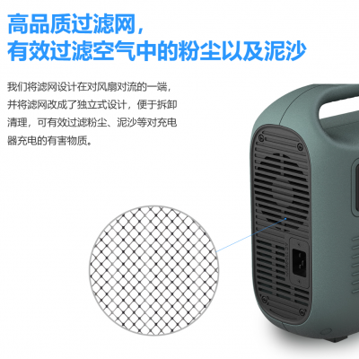 我們將濾網(wǎng)設(shè)計在對風扇對流的一端,并將濾網(wǎng)改成了獨立式設(shè)計,便于拆卸清理,可有效過濾泥沙、碎屑等對充電器有害的物質(zhì).