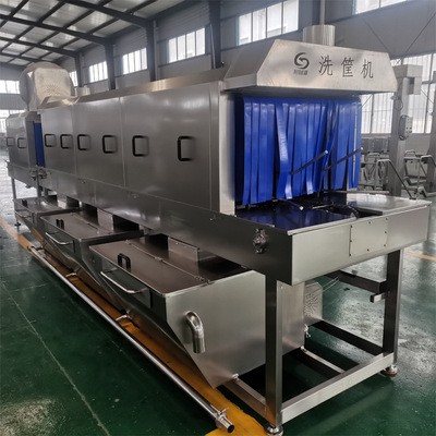 我們的洗筐機一般采用6米長制作,分為四段清洗,預洗、主洗、漂洗和沖洗,根據客戶的要求后面可加吹干機,可進行對筐子、托盤等的吹干