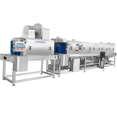 我公司專業生產食品機械設備,包含兩大類,一是清洗殺菌類設備,另一類是肉制品加工設備;我們公司有專業的技術人員、設計人員、肉制品這一塊在2019年的時候設備基本已經更新完畢,去年年底的時候我們預計2020年開始在清洗殺菌這一塊進行全面設備升級,其中就包含了洗筐機這一塊,預計今年年底把所有的設備全部進行升級完畢,為讓廣大客戶使用上好用的,自動的洗筐機,2019年的時候我們就對洗筐機這一塊進行了研究和更新,年初我們已經對這款洗筐機全部進行更新完成,下面我對新款的洗筐機進行一個介紹和描述