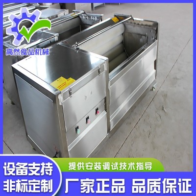 毛刷清洗脫皮機主要用于胡蘿卜、馬鈴薯、紅薯、蘋果、梨、紅果等根莖類果蔬的清洗以及豬頭豬蹄去毛,魚類去鱗??稍谖覐S研制的速凍薯條加工流水線上使用,也可單獨使用。