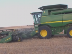 這是一臺價值兩百萬的收割機,一天可以收割130畝地的糧食